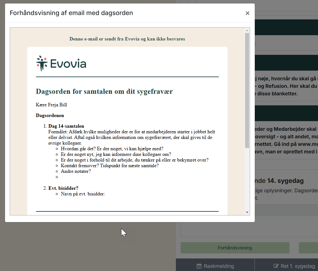 - Send (redigerbar) dagsorden til en sygemeldt medarbejder