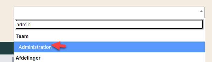 2. Vælg det team, medarbejderen befinder sig i – f.eks. Administration – ved at klikke på teamnavnet.