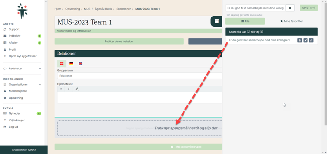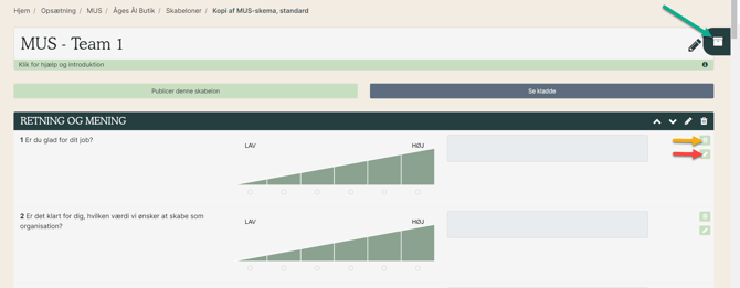 Husk at klikke på "Publicer denne skabelon" hver gang der laves ændringer i spørgerammen.