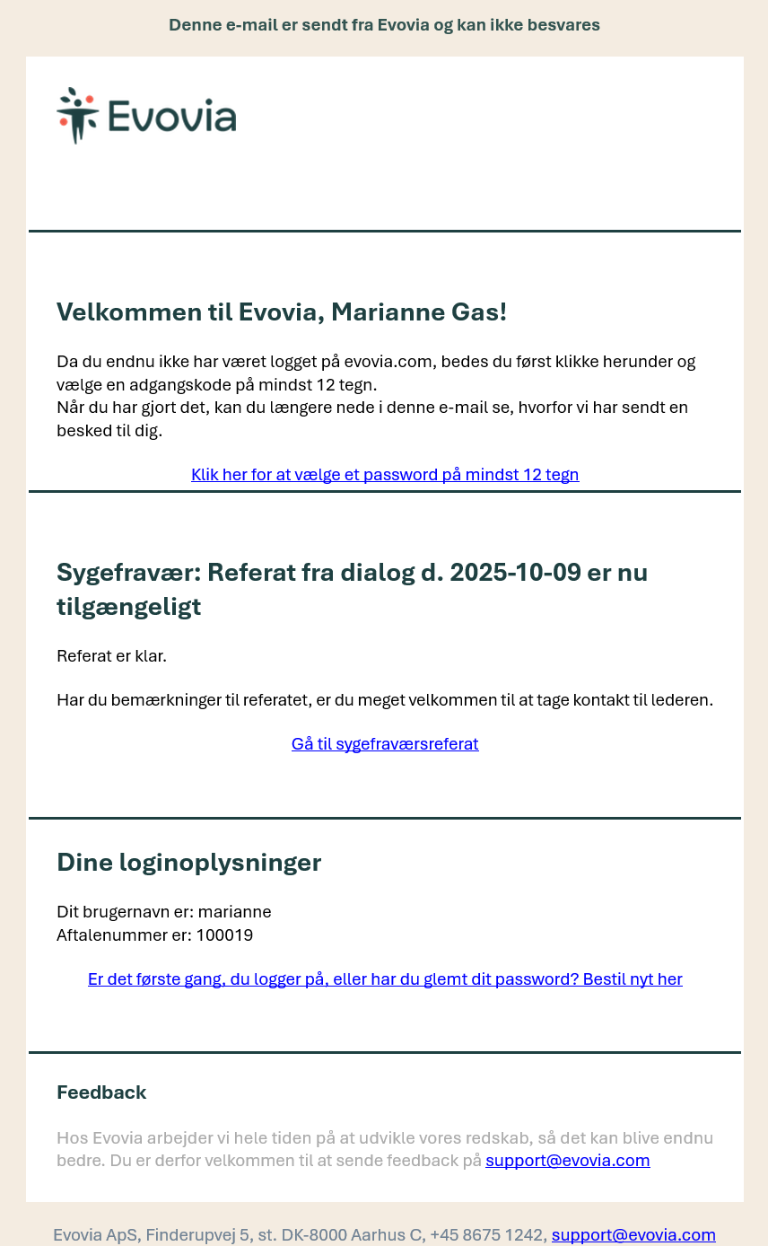 Mail til medarbejderen, når lederen sender en dagsorden.