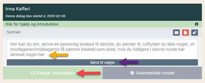 Når alt er klar, klikker du på ’Send til valgte’ (lilla pil).