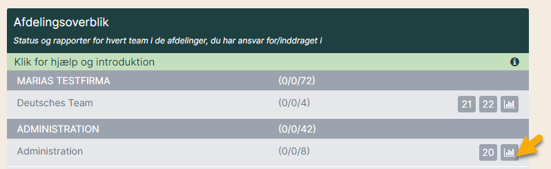 Du kan trække statistikker på flere måder. Ønsker du at se tendenserne for et enkelt team, klikker du blot på symbolet med søjlediagrammet ud for teamnavnet (gul pil).