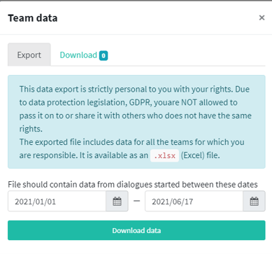 The manager can only export data from the finished EDP dialogues in their own teams. Current dialogues can be exported once they are finished.