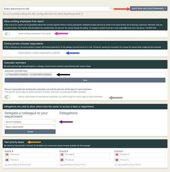 - Gray arrow: Decide if the responsible person for the manager evaluation can edit the reminders.