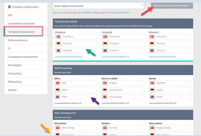 - Red arrow: View or edit the questionnaires. Read the manual on how to create or edit questionnaires.