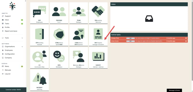 Grey arrow: Select days for automatic reminders. This field is only visible if, in the setup, access has been granted to edit automatic reminders. See more under Setup of 360-degree manager evaluation.