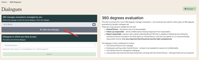 A manager cannot be responsible for their own manager evaluation, so the “Person in focus” (red arrow) and the “Report owner” (purple arrow) cannot be the same person.