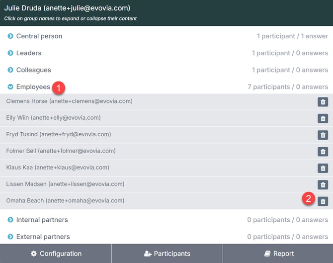 While the evaluation is active, report owners can continuously track who has responded and how many responses have been received.